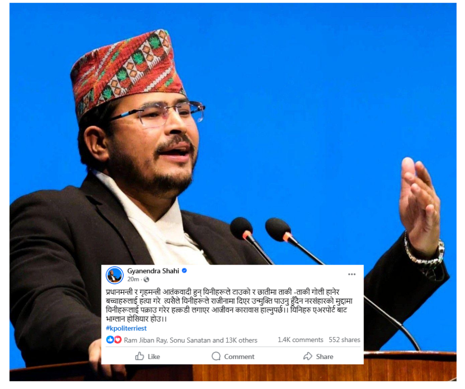 सांसद ज्ञानेन्द्र शाहीको आक्रोश: प्रधानमन्त्री र गृहमन्त्री आतंकवादी