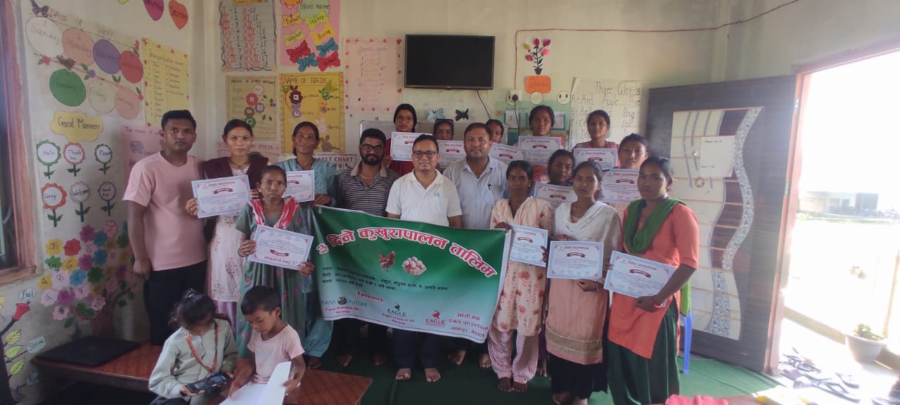 २०८२ असोज १० बर्दिया :- बर्दिया जिल्ला मधुवन नगरपालिका वडा नं. ७ स्थित बोडरमा बस्ने मुक्त कमैयाहरूलाई लक्षित गरी ईगल फाउन्डेसनको आयोजना तथा Frank Eiendom AS Norway र Eagle Creative AS Norway को आर्थिक सहयोगमा तीन दिने कुखुरापालन तालिम सम्पन्न भएको छ।